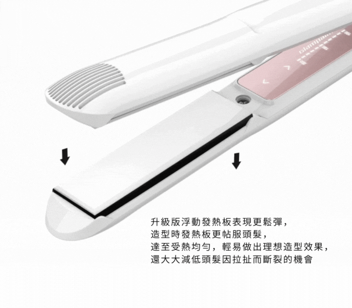 ⬆️提升浮動發熱板彈性 : 令頭髮更帖服於發熱板,達至受熱均勻,亦減低因拉扯而段髮的危機。